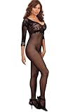 - Open Crotch Black Fishnet Bodystocking with Lace Neckline