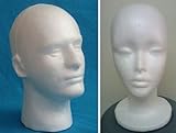 set of 2 Styrofoam 1 male and 1 female white face hard MANNEQUIN Wig Head FOAM Model